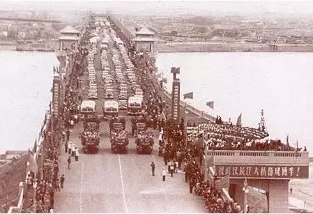 1957年10月15日,武汉长江大桥落成通车典礼。