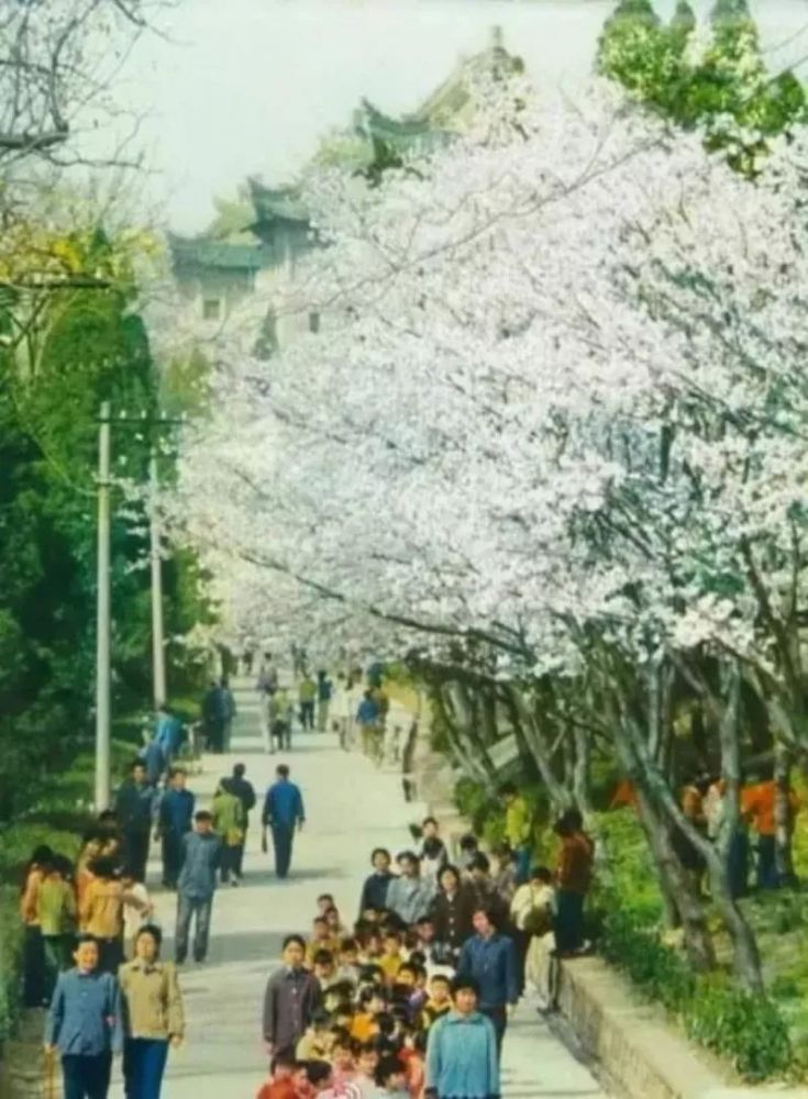 80年代,游客在武汉大学踏青赏樱。原来那个年代就已经开始流行去武大赏樱花了。