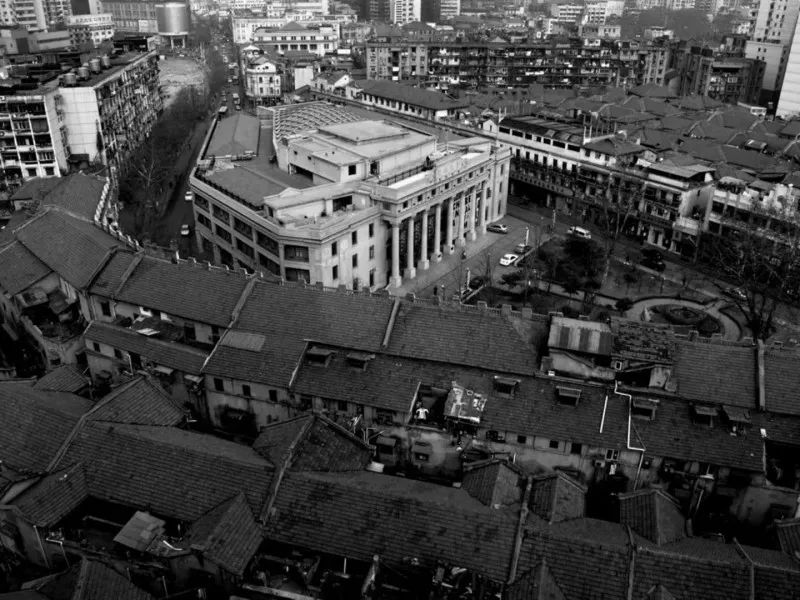 1985年,武汉,航空路转盘。画面左边是汉口饭店,照片的拍摄角度在武汉饭店的楼顶,也就是现在新世界中心店的位置。