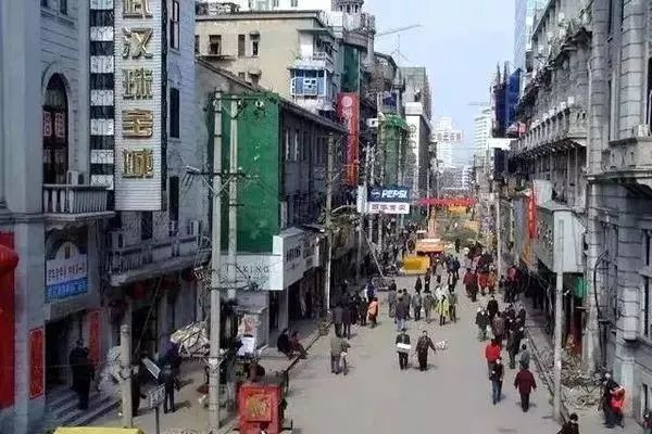 1990年代,武汉,江汉路人行天桥往中心百货大楼方向的场景。