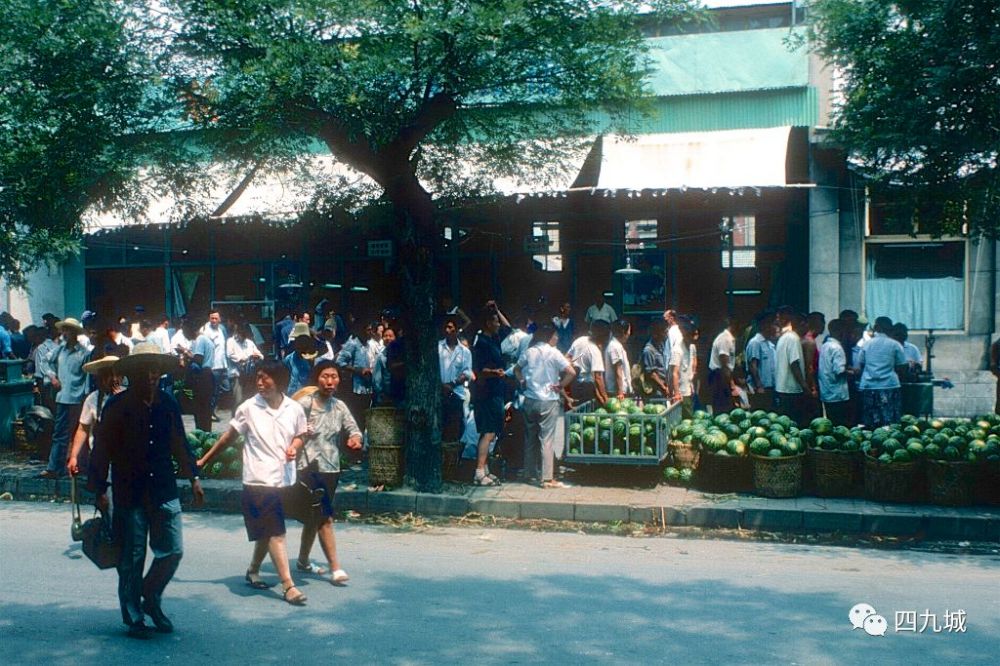 街边上一个卖西瓜的摊位上排满了人,西瓜是那时候人们在夏天的降温良品。