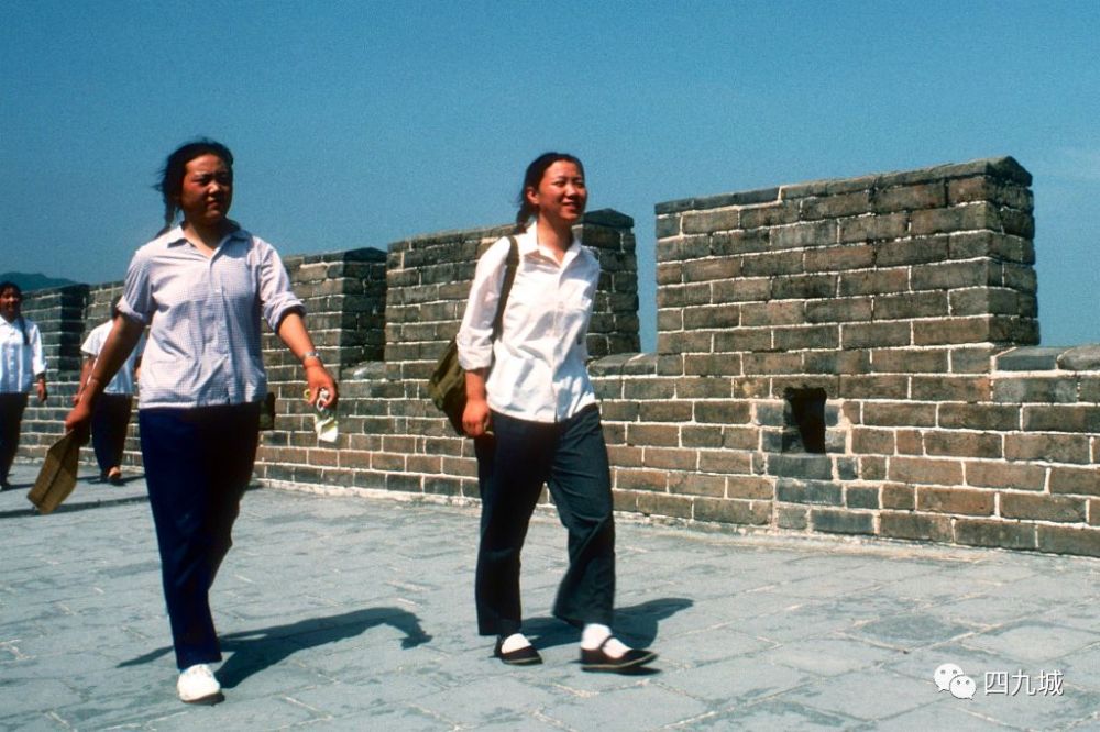 图为到八达岭长城上游玩的两个女孩,穿的很朴素。
