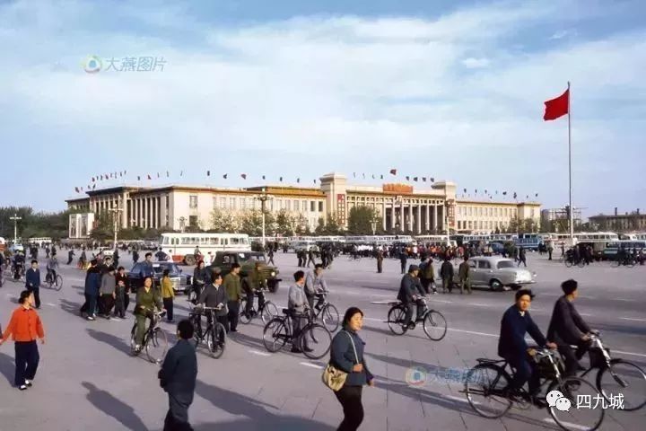 1977年5月1日,每天穿越天安门的车辆主要是自行车、手推车,不多的公共汽车和很少见的小汽车。
