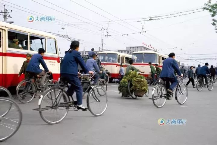 北京街上的自行车、无轨电车,七八十年代的中国不愧是世界上拥有最多自行车的国家,街上满满的都是自行车。