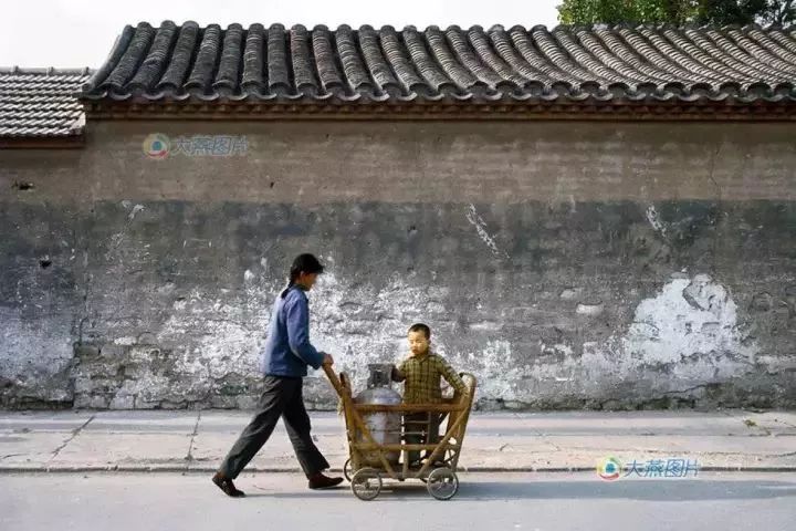 1977年5月。一位年轻的妈妈,推着竹编儿童车,把孩子和煤气罐都放在了车内。可别小看这竹编的儿童车,在当时可是携带儿童出行的代表性交通工具哦,因为它方便,不仅能容下孩子,还可以运输菜、粮、煤气瓶等简单的生活用品。