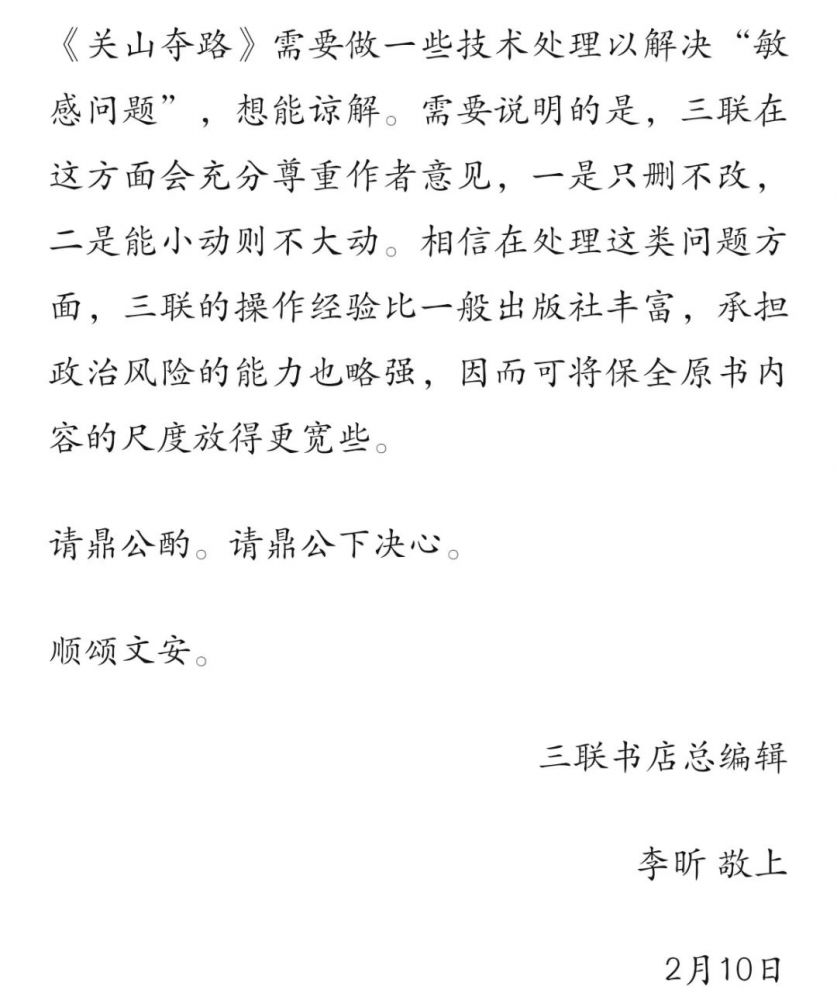 三联书店总编辑李昕说,“这部书,简直是可遇不可求。我们当即决定加入版权竞争。同时,我承诺,尽最大努力保持作品原貌不变。”