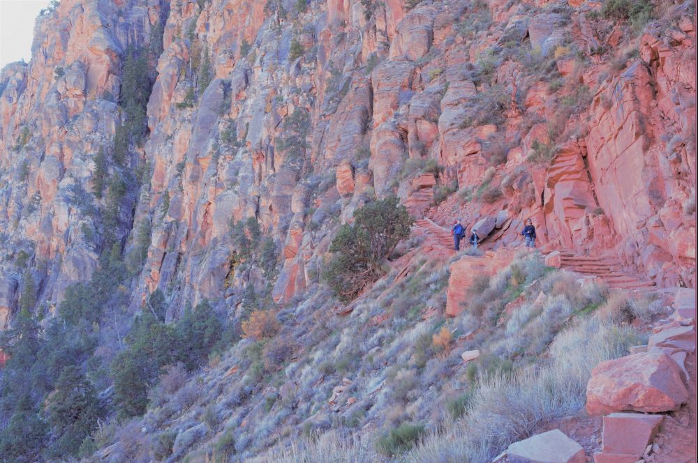 每次去大峡谷都觉得玩的不尽兴。如此独特的自然景观只能在上面看一看,感觉是一种遗憾。1992年那次去大峡谷时,试图徒步走到峡谷的下面看看。没想到由于没有事先准备走到半路弹尽粮绝便无功而返。随着年龄渐老,想徒步到峡谷下面去一趟,想从不同的角度欣赏大峡谷的想法也显得更加急迫。前几天一直在关注谷底住宿的SJ通知说PhantonRanch临时有了空床位,我们立即决[