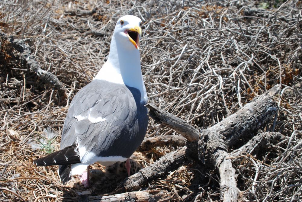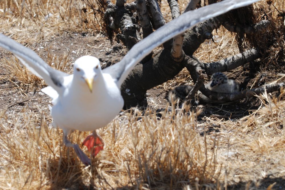 在距离加利福尼亚Port Hueneme海岸11英里,有一个在不到一平方英里的荒凉海岛,名字叫Anacapa Island。我们于2014年六月初来到这里。由于这里没有天敌,每年有近万只小海鸥在这里诞生。几千只海鸥妈妈在岛上做月子,场面震撼。而观察这些海鸟的个体和脾气,更是千差万别,别有情趣。荒凉的海岛就像海鸥的月子中心,每家都有各自的领地,邻家的宝宝如误入其领地,会遭到大妈大婶的殴打甚至夺其生明,当然老海鸥也会奋力保护自己的子女,在岛上时有看到这样的混战。如果有人胆敢接近产房,海鸥产妇会大声嘶吼以示警告,再逼近它们则会向你猛扑决一死战。