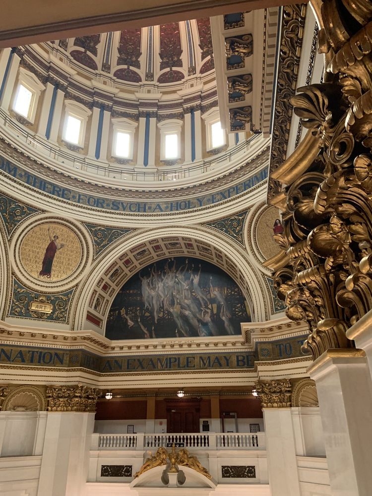 人是有惰性的,老以为家附近的地方有的是时间去玩,前前后后经过哈里斯堡市有二十多次,一直没抽空看看宾州议会大厦。这次预约了30分钟的讲解,可以参观一下。