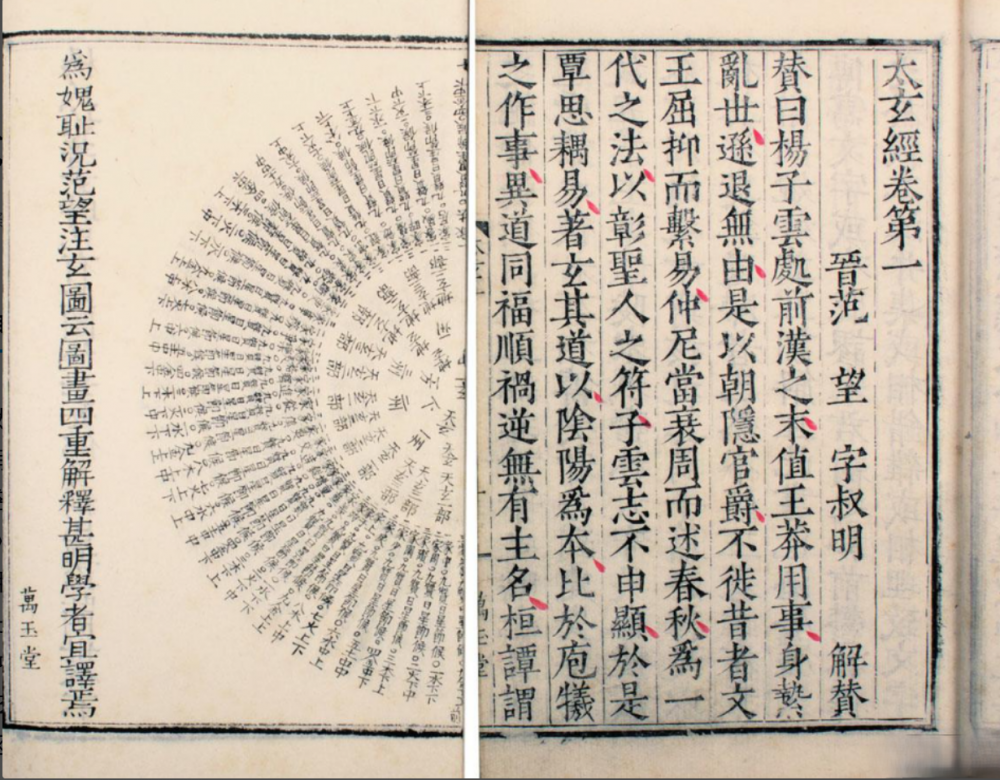 晓征先生于此段案语中,对《图》《书》之数理布局详加申说,此不赘述。至若原文所引之“《太元》”,实乃汉代大儒扬雄所撰之《太玄》。笔者考之,此非先生笔误,亦非刊刻之失,乃清儒避康熙帝玄烨之名讳,例改“玄”为“元”。范望在注解扬雄《太玄》时,重言两个五,即“五与五相守”以为十。笔者需在此着重指出:《河图》《洛书》之名虽至宋初陈抟方始附会其图,然此二图所载之数理却古已有之。《河图》之内核实为九宫图,亦谓“九数图”;《洛书》之内核实为五行生成图,亦谓“十数图”。此二者本属先民算术之常理,与神道设教无涉,笔者拟于后文另辟专章,详加考辨。