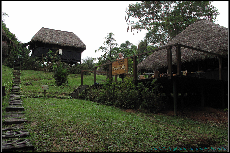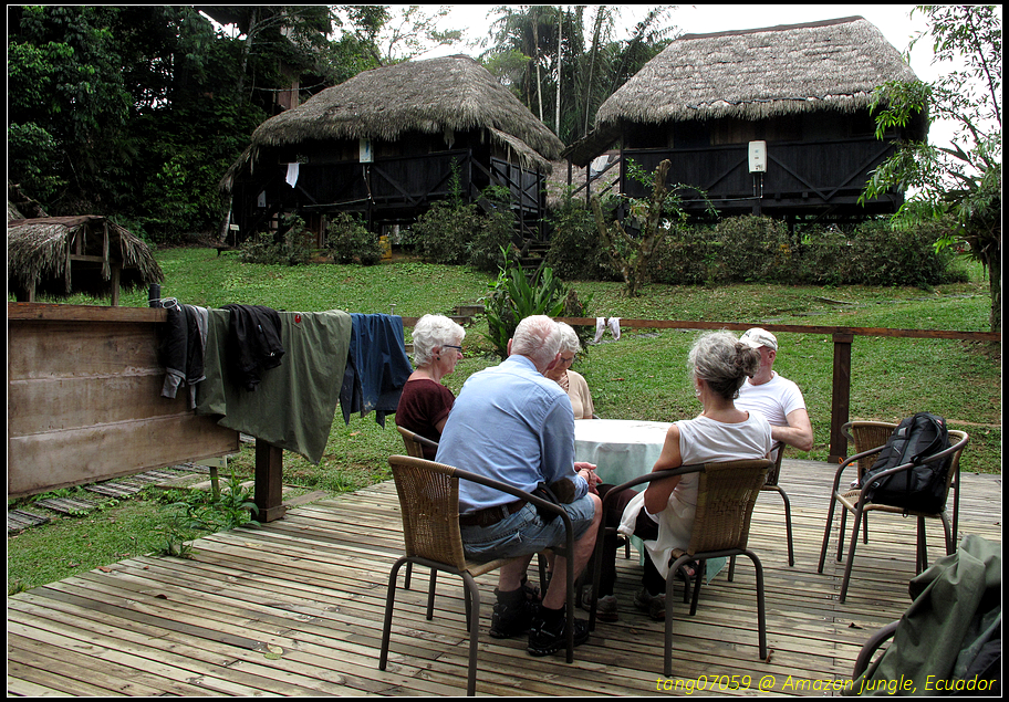 我去的是Cuyabeno国家公园,我选了Cuyabeno Lodge四天三夜的行程。头天下午到达丛林度假村(这Lodge的条件实在不错,还是叫成度假村比较贴切),第四天吃完早饭离开,所以所谓四天三夜,在丛林里呆足的只有两天。