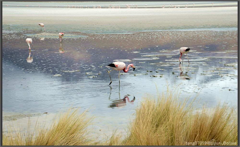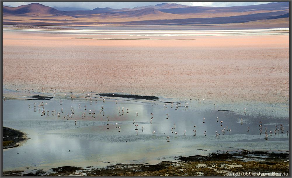 今天几个火烈鸟盐湖,头几个看下来,到过东非的我一直在心里提醒自己:各有特色、别带成见、别势利眼看不起人玻利维亚。一直到最后一个红湖,那色彩与火烈鸟的密度配上背后的雪山,谦虚点说都不至于输给东非。