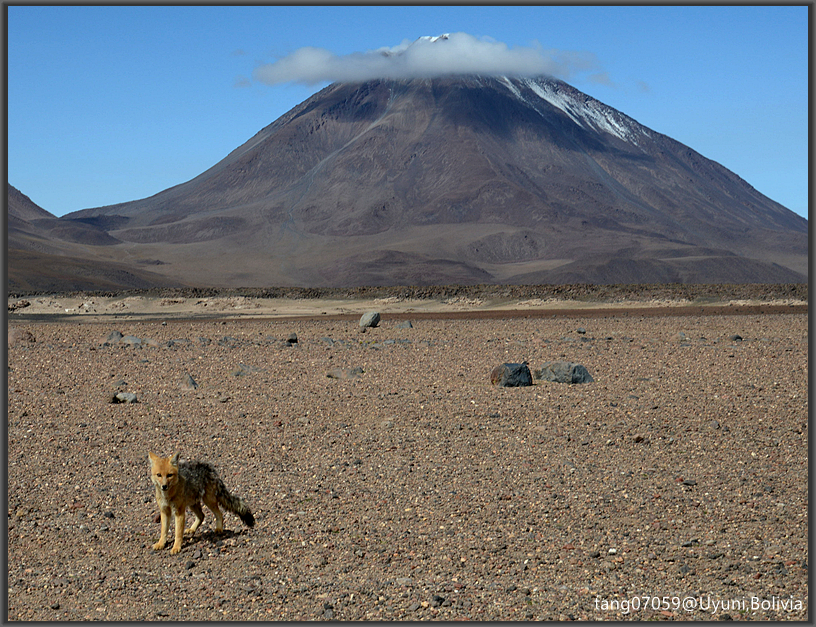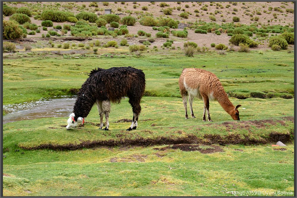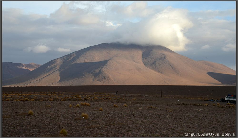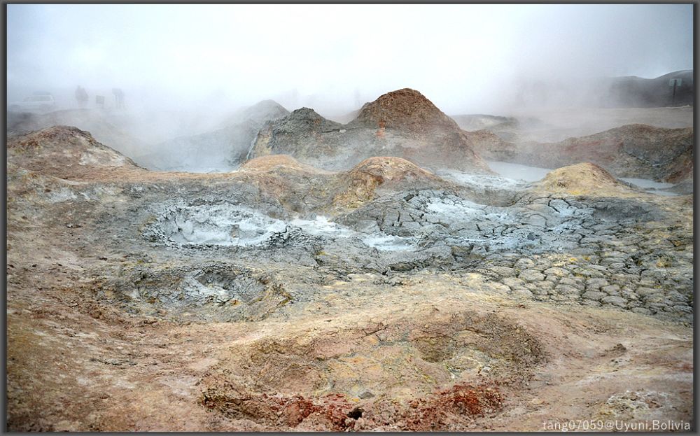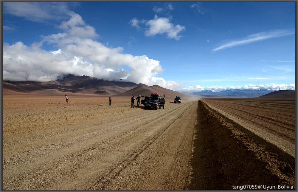 我们这个团一共三拨人,两个当地玻利维亚女人、三个马德里来的西班牙人、还有我,三拨人分住三个不同的旅馆,我是第一个被接上车的人,所以司机(也是导游)让我坐他边上、最好的副驾驶座位。我开始还以为我付了最多的钱,所以旅行社让我坐个好位置。没想到后来西班牙人在背后捣鼓,导游说座位要轮换。看完“天空之镜”之后我提出换座位,导游说一天换一次,所以我维持原座,到了第二天我自动坐到了第二排。