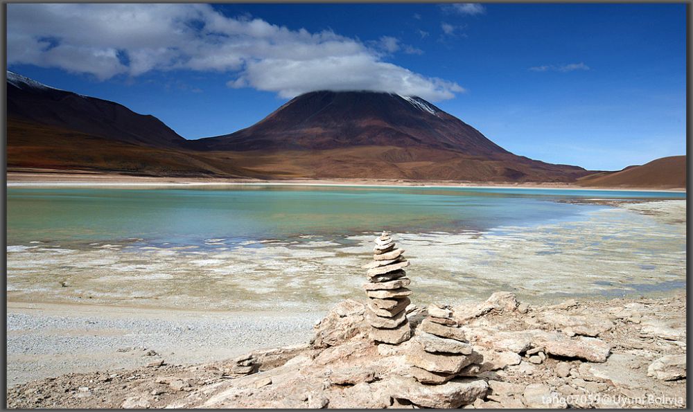 “天空之镜”三日游的头一天主要看天空之镜,后两天继续南下,有若干个石林、若干个有火烈鸟的盐湖。其中有一个是红色的、一个是蓝色的。最后到达的“蓝湖”背靠火山,火山后就是智利了。时间充裕的话可以继续南下进入智利,或者掉头返回乌尤尼城。