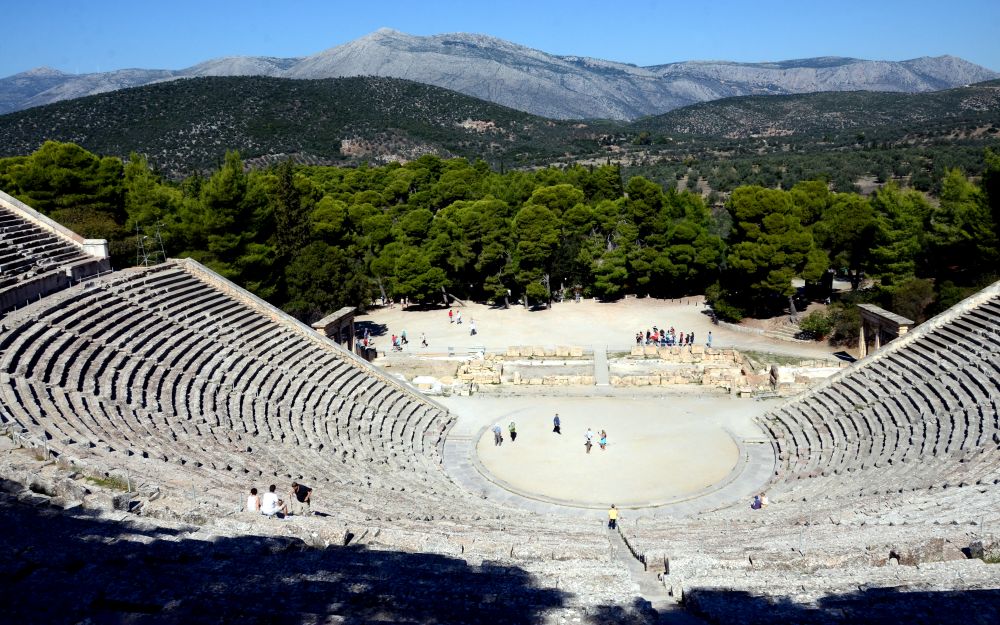 建于公元前四世纪的埃皮达罗斯剧场是保存得最完整的古希腊剧场,同时许多人认为它也是音响效果最好的古希腊剧场。各个旅游团的导游无一例外都会让他们的团员们分散到观众席上的各个角落,然后他或她会在圆形乐坛的中间划一根火柴,或用力地揉一团纸,向大家证明古希腊人的声学设计和工艺是多么地奇妙。可惜我无缘在那里聆听音乐表演。