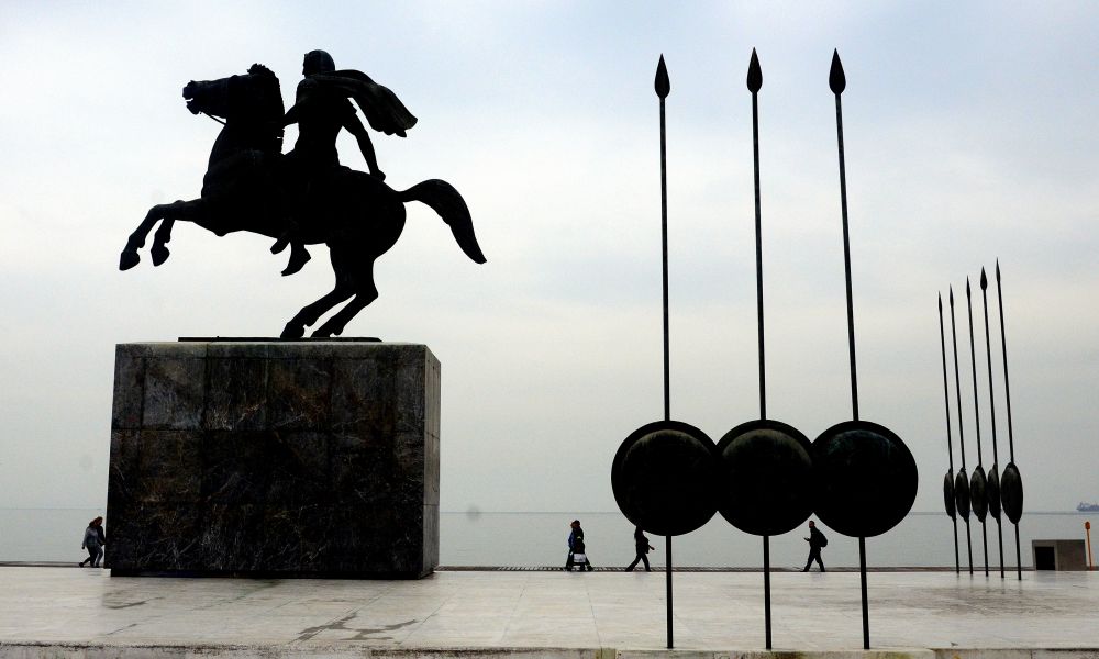 作为马其顿地区的首都,亚历山大大帝纪念碑自然是必不可少的。问题是,马其顿地区的北方邻邦之一就是马其顿共和国(Republic of Macedonia),距塞萨洛尼基二百四十公里的马其顿首都斯科普里(Skopje)从2011年起同样有个威武雄壮的亚历山大大帝雕像。