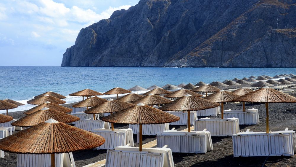 圣托里尼有好几条公交线路,交通挺方便的。卡马里在费拉的东南九公里处,那里的热点是几公里长的海滩,尽管是美感缺缺的黑碜碜的砾石滩。