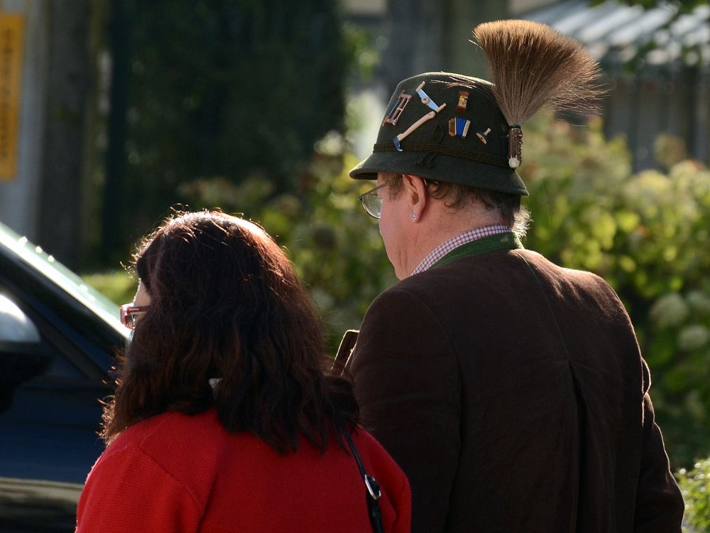 巴德伊舍二:这位先生帽子上的饰物除了刷子,还有木锯、镐、手风琴、砂轮(?)和另一物件。估计他是个骄傲的手艺人。