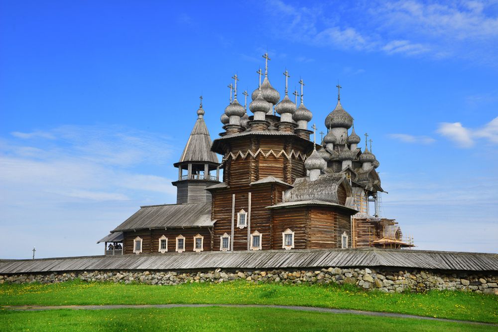 基日岛位于卡蕾莉亚(Karelia)的奥涅加湖(Onega),岛上的基督变容大教堂(Transfiguration Church),圣母庇护教堂(Intercession Church)以及锥形钟楼(the Bell-Tower of the Kizhi Pogost)组成的古俄罗斯宗教木建筑群,1990年被列为世界文化遗产。