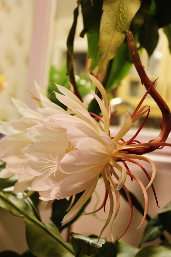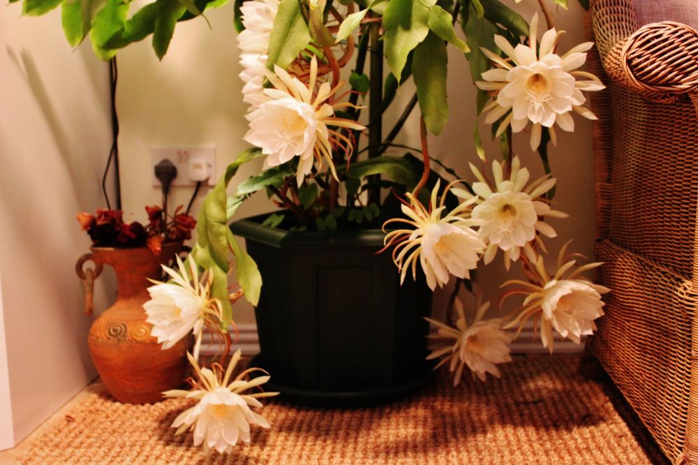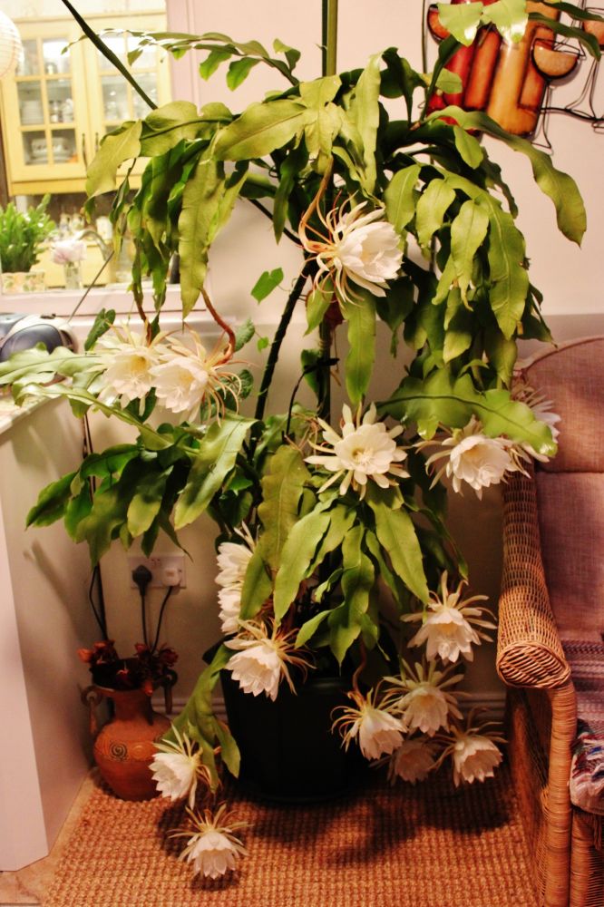 跟前一天一样剪了12朵美丽的昙花摆放在房间里,整个房子里被昙花散发出诱人的香气缭绕。