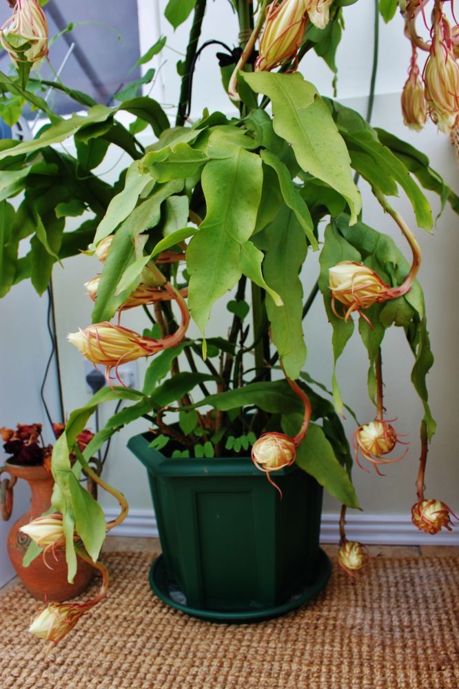 这是昙花第三天盛开的情景,在即前一天盛开了24朵后,(我前一贴错把24朵写成23朵)又盛开了18朵芳香四溢的鲜花。