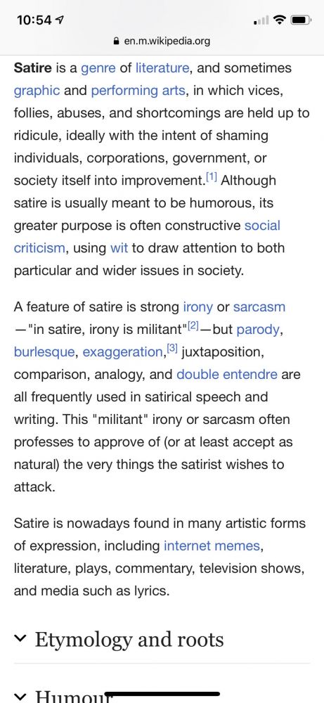 维基百科对Satire 这种文学体裁的解释: