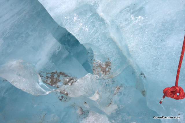 The ice near the lower section of the glacier looks quite dirty. Dust and pieces of rock brought down by water, dust storm and rock slide accumulate on the surface of the ice. Scott told us that once much of the glacier were painted orange by a huge red dust storm from Australia.