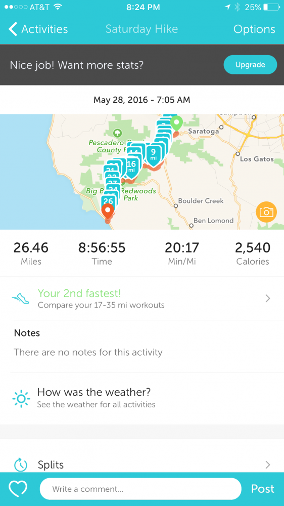 我们从35号公路和9号公路的交叉口,也叫Saratoga Gap的起点出发,除去中午在Big Basin Headquarters休息吃饭一个小时,全程共用了将近9个小时。