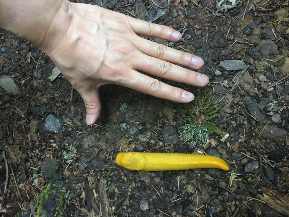 Banana Slug 和涛的手的对比。这个家伙的个体真不小。