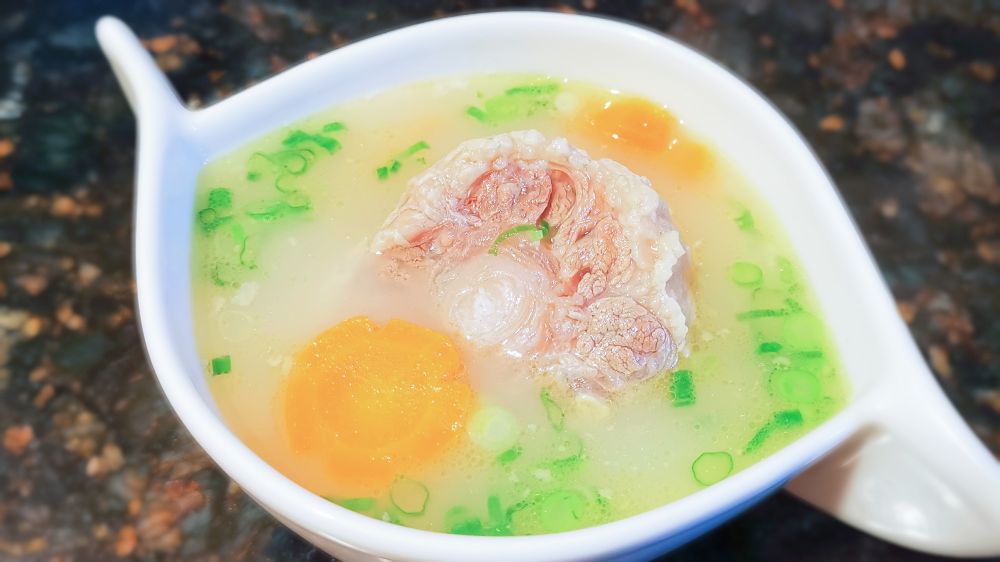 今天的牛尾汤选用的是清炖来保持它的原汁原味,一点胡萝卜给它增加一点颜色和一丝回甜。