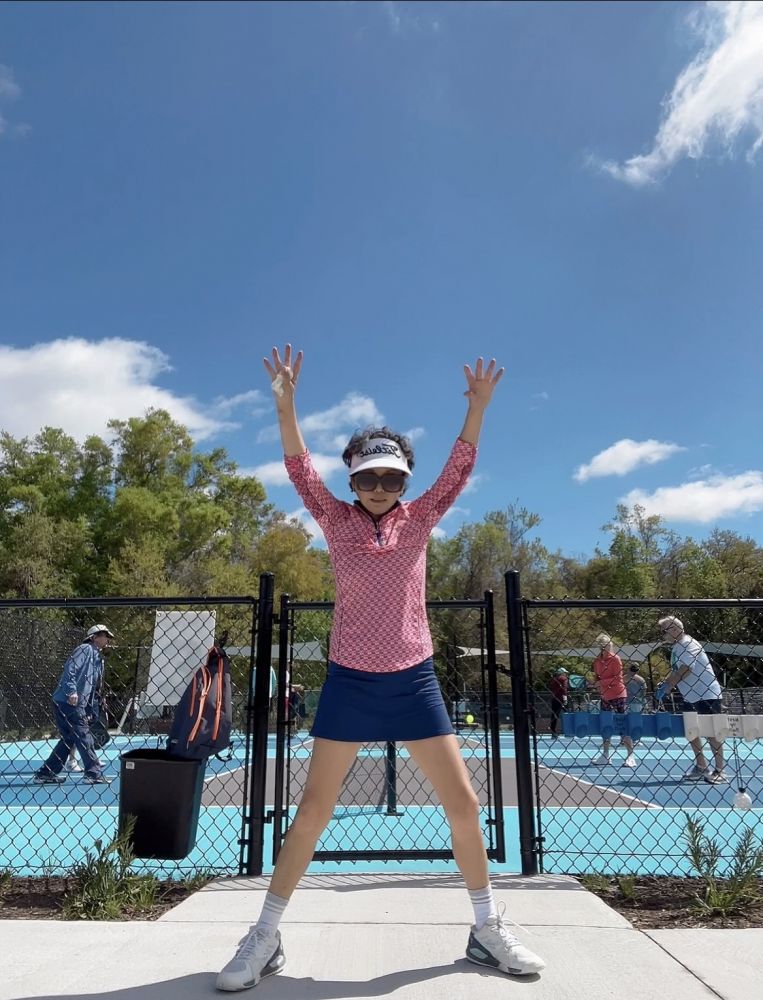 于是我就很自觉地把自己降级,到COURT#4准备打,我老公和他的朋友斯科特坐在COURT#4的长椅上面,我说你们上#3去打吧,斯科特说不去(我估计是在#3和#2受气了不愿意去了,因为我看到他在#2打球估计被劝退到court#4 了)。我老公这个人就特别讲义气,他的水平在#2 和#3打没问题的,但也说不去,因为要陪着斯科特打。