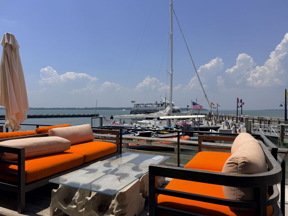 我们回湖边的家时候,海岛的朋友们帮助照顾我们的mails、 其他事情。所以过一段时间我们会请他们吃饭,今天去的是Quarter Deck at Harbour town in Sea Pine. We had a good time.