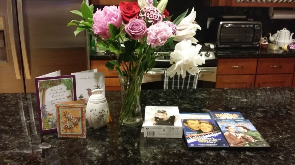这是女儿送给我的花和小瓶子。 老公的家人寄给我的卡,小的那个是他姐姐手工做的,挺别致的。 DVD是LG送给我的礼物。 那DVD我们已经看了四部了,有两部是笑片。 让我笑到喘不过气来。 那是"A Very Harold Kumar Christmas" 和 "American Reunion"。 在生活中,我是个特别喜欢笑的人.