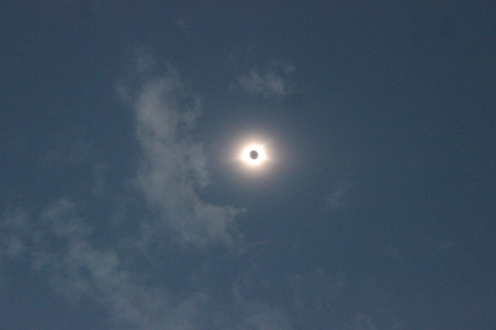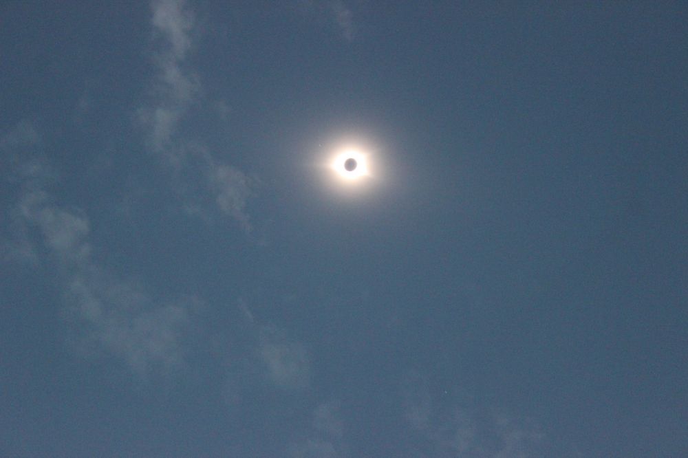 前三张是全日食中, 后两张是之后, 太阳又出来了, 像一颗星星。 在全日食的两分钟多, 我们是可以裸眼看天空的。
