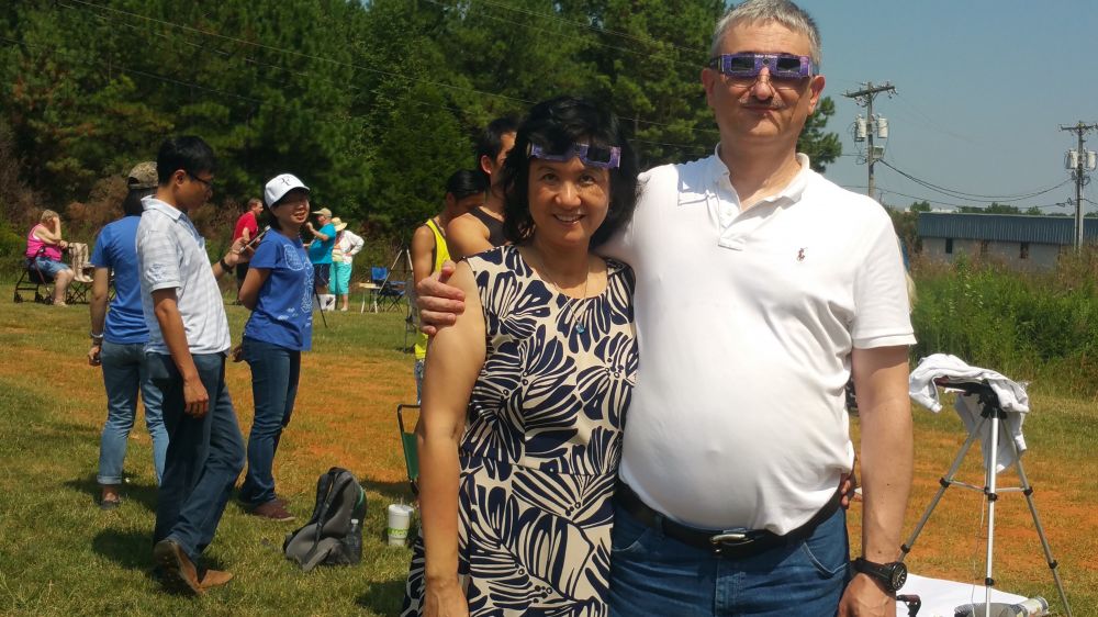 为了看全日食,我们周六就出发到了北卡的Biltmore Estate,周一从Biltmore Estate开了两小时的车到南卡的一个小城,。 12点到达看日食的地点的,就把车泊在麦当劳。 在炎热中等待了两个小时,才终于看到全日食。我老公为看这个等了八年了.