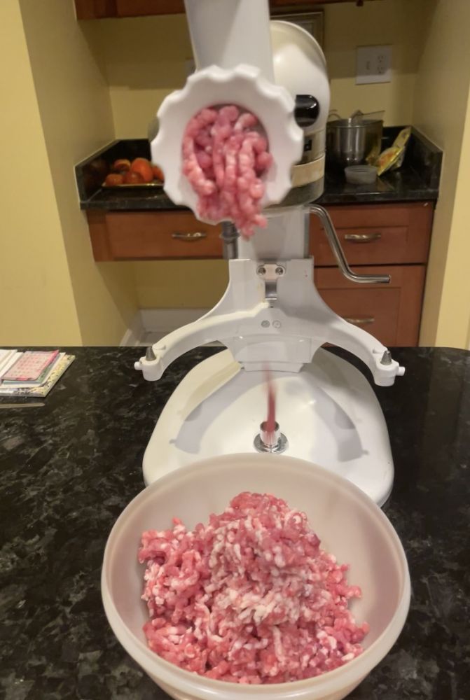 我觉得包云吞自己绞的肉比较新鲜点, 就请他帮忙绞肉馅
