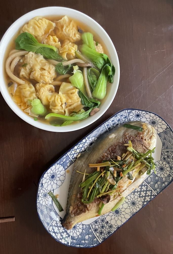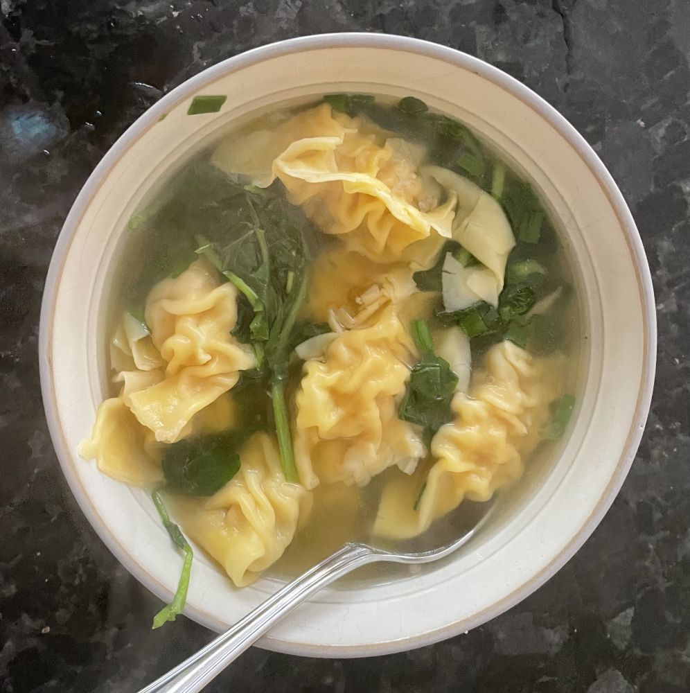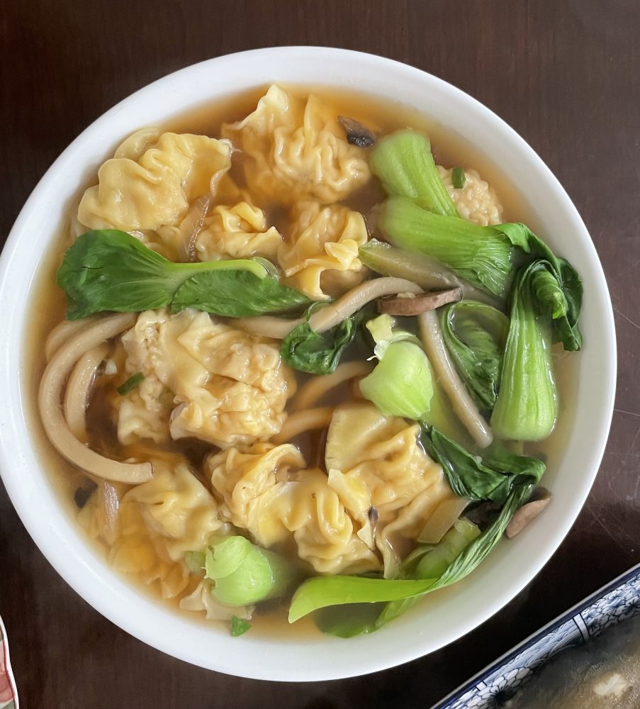 这是几天前煮的云吞汤, 是用上一晚吃剩的乌冬面的汤做汤底。