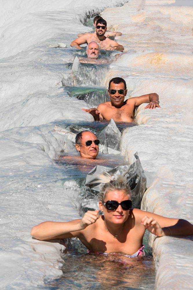 20. 第7天是长途跋涉,天刚亮就出发天黑前赶到 Antalya, 途中游览棉花堡 (Pamukkale hot springs) 和邻近的 Hieropolis 古城遗址。二者一起为UNESCO World Heritage Site。棉花堡(1)