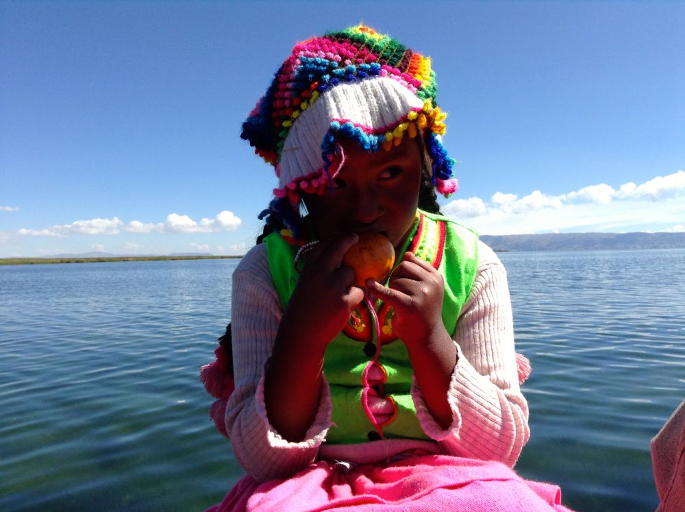 秘鲁回来,时不时就会打开这张照片看看。每次都很感慨,不同的感慨。我自己都忍不住要夸夸自己,一个不会摄影的人,怎么就拍出这么好的照片呢。当然,感慨的不是这个。照片摄于湖上的浮岛,我们乘草船绕岛游。女孩的父亲在撑船,带上女儿,随便唱两首歌挣得一点小费。女孩至始至终都没露过笑脸。朋友给她一个橘子,她就这么吃了。