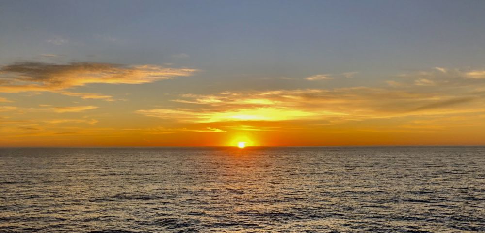 南游归来,于海轮上观日出。一新气象,四海升平。惟愿新年航程安泰,破宿雾,向启明;顺风顺水,扬帆万里。祝新朋老友,远亲近邻:元旦快乐,新年吉祥!