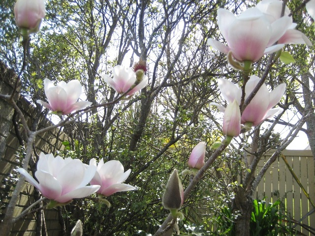 顺贴:今年屋前盛开的玉兰花,种下好几年了,一直不太开花,想来花根终于穿过了粘土层,根部舒展开了。开花时期是没有叶子的,花开过后才长叶呢