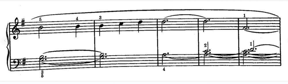 弹到倒数第1小节时,4和2指要抬起来,然后和1指一起弹;还是4和2指不动,1指加上?