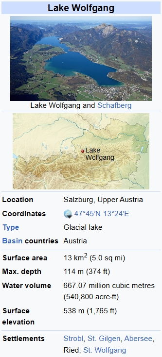 【2】. 沃夫冈湖(位于奥地利),白驹客栈( Oscar Blumenthal and Gustav Kadelburg于1897年写的话剧里的现场), 详见https://en.wikipedia.org/wiki/Lake_Wolfgang
