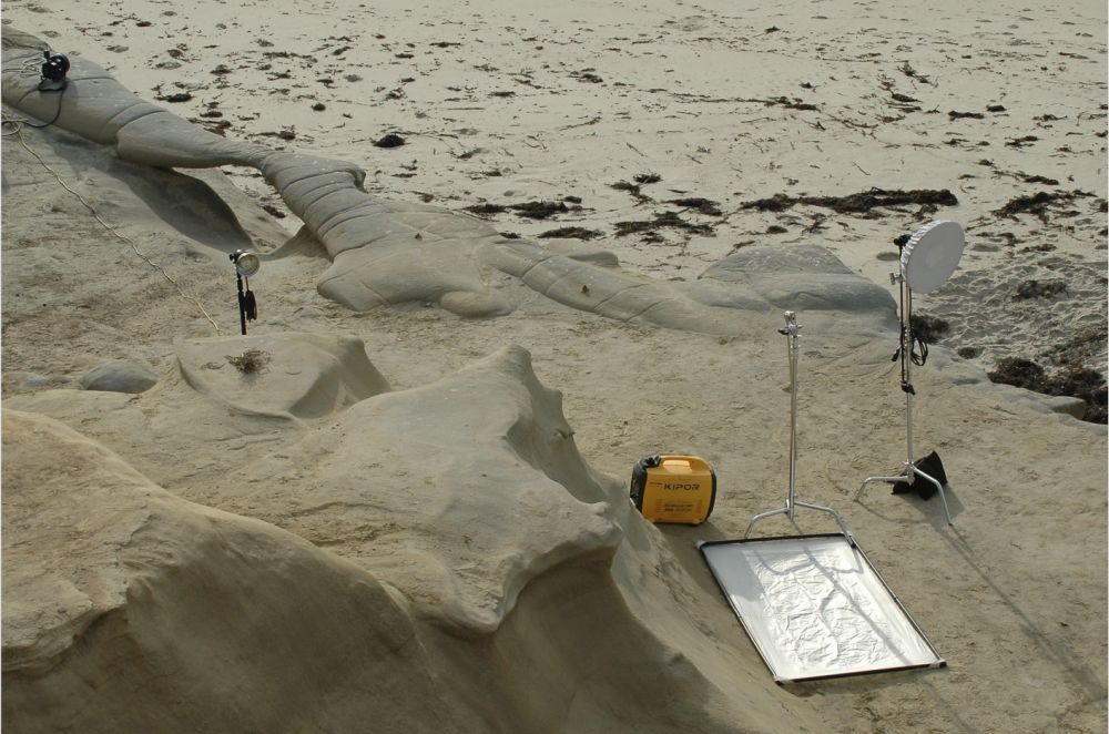 2. 漂白了的沙滩,墨黑衣着的摄影师,一心以为有鸿鹄将至的摄影组成员,唯一的桃色给沙滩留下春风的足迹,这是哪门子家的不知有汉,无论魏晋?