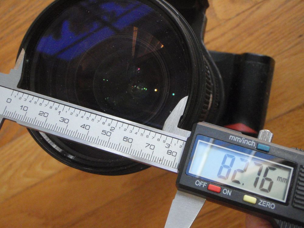 1. 用千分尺量出镜头滤片的内径,千分尺的两个尖要接触到玻璃, 86 mm的镜头, 量出82.76 mm的内径: