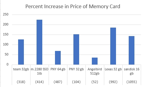 涨价猛于虎:近来micro SD card, SSD and 外接硬盘价钱增加的图表