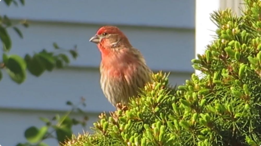 它们是非常常见的庭院鸟类,尤其在郊区,经常出没于喂食器旁。以下是区分它与外形相似的家朱雀和紫红朱雀的几个方法: