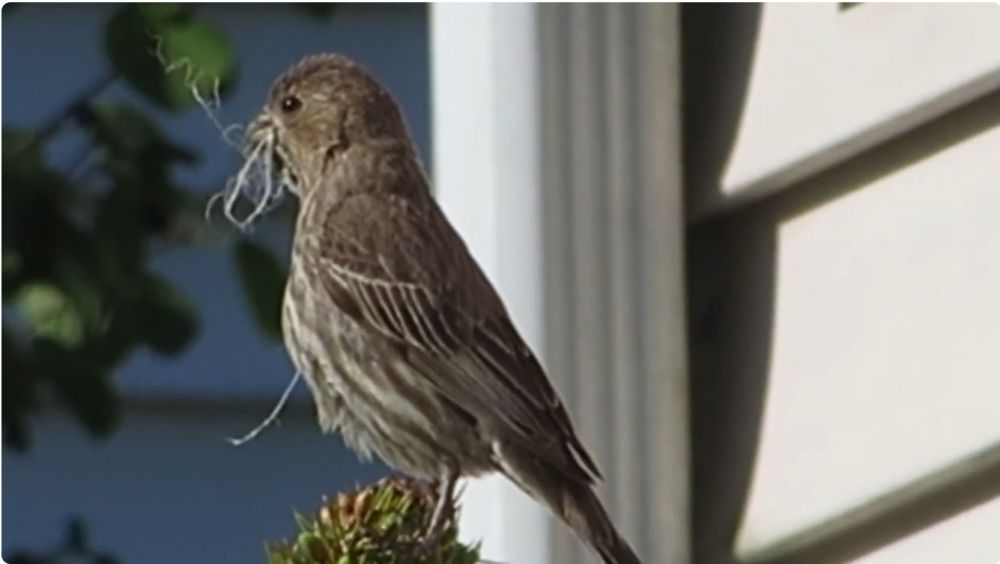 行为:这只小家伙看起来正忙得不可开交!它喙部叼着的纤维表明,它正在收集筑巢的材料。