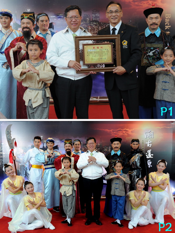 图1:2017年崭新醒世巨作《溯古还原》即将在桃园展演中心盛大演出。5月27日桃园市大家长郑文灿市长特别颁赠表扬状,表扬太极门掌门人洪道子博士长期致力于气功武术文化传承,强健身心体魄,推广社会善良风气。
