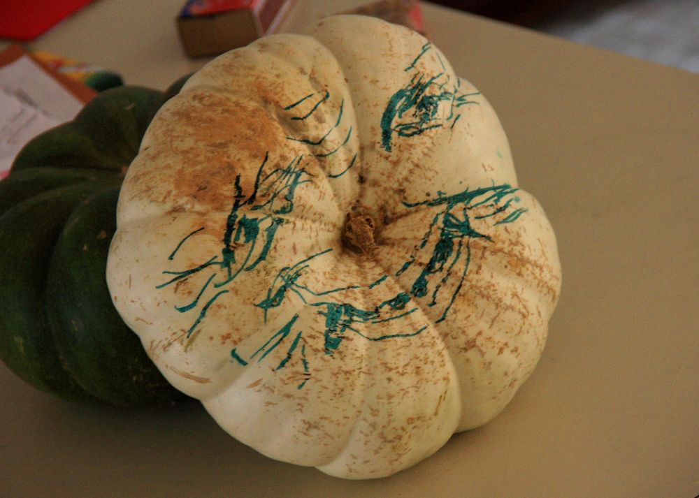 心心的白南瓜也不害怕,挺好玩~~~,对,过完节就把南瓜吃掉!心心周末快乐!
